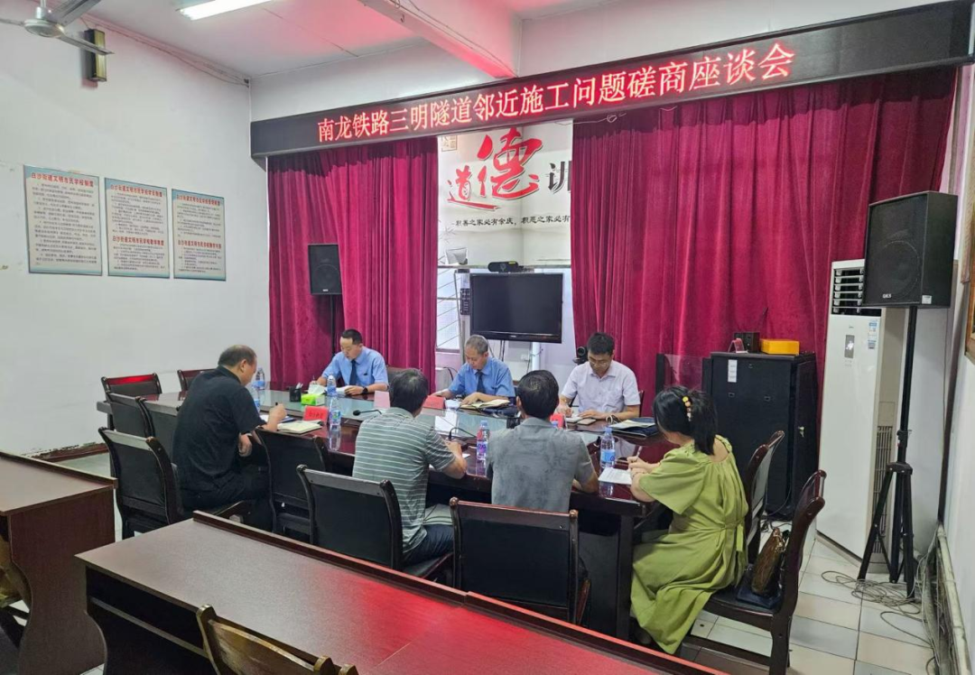 7月2日,我院在三明市三元区白沙街道办事处,组织召开南龙铁路三明隧道临近施工问题隐患磋商座谈会,听取铁路部门、施工单位、地方行政部门的意见,就建立健全信息共享、路地协作、安全生产等机制达成共识。