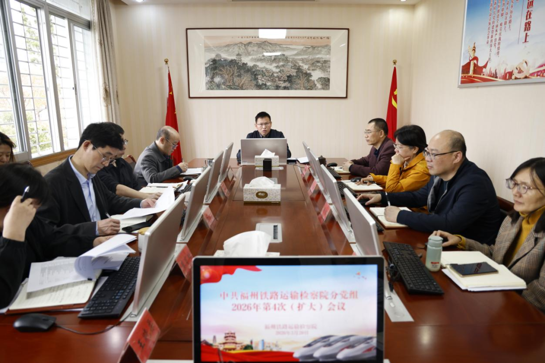 3月20日,我院召开分党组(扩大)会议,传达学习习近平总书记在全国两会期间的重要讲话精神和全国两会精神,以及省委、最高检、省院相关会议要求,审议《福州铁路运输检察院2026年理论调研课题方案》,研究确定2025年度考核结果等事项,结合铁检实际提出贯彻落实意见及下一步工作要求。