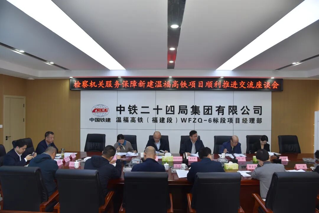 3月25日,院分党组书记、检察长黄文塔带队前往新建温福高铁6标段项目部走访调研,实地参观项目智慧产业园,了解温福高铁项目施工进展情况,与承建单位、福建铁路建设指挥部项目负责人召开座谈会。与会单位围绕项目建设过程中相关的农民工薪酬保障、安全生产、征收补偿和行政审批等问题进行了深入交流,为进一步强化检察服务新建高铁项目,合力打造安全工程、精品工程、廉洁工程、绿色工程、法治工程奠定基础。
