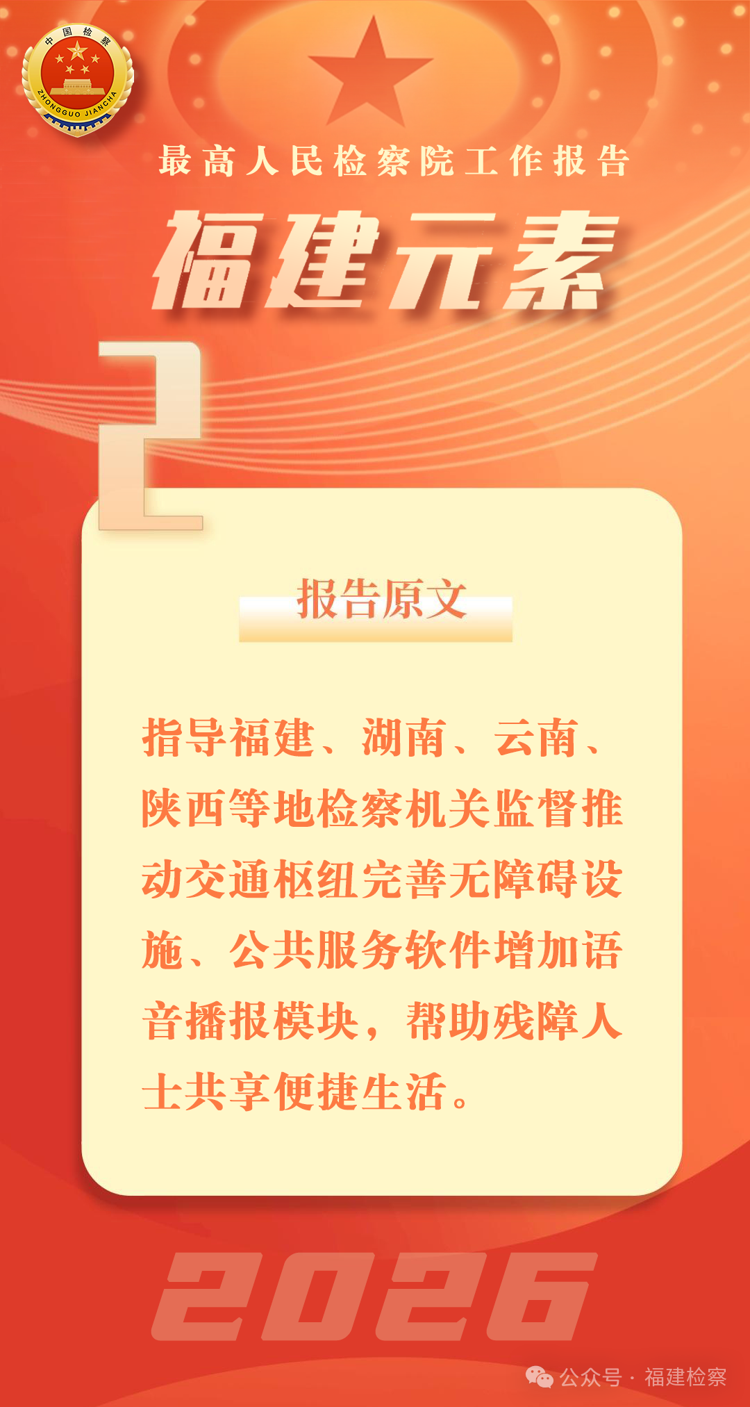 2024年底,省残联向省检察院反映全省现有听力残疾人15.3万人、言语残疾人1.3万人,对120医疗急救无障碍呼救有着迫切需求。省检察院以公益诉讼方式与省卫健委开展案件磋商,在充分研究论证的基础上进行整改。2025年2月,省检察院、省卫健委、省残联共同举办启动仪式,在全省急救中心全面建成无障碍呼救功能系统,在全国率先实现省市县三级无障碍呼救全覆盖,满足听力、言语障碍人士医疗急救无障碍呼救需求。该案先后入选最高检、民政部、中国残联共同发布的无障碍和适老化检察公益诉讼典型案例,2025年度全国检察机关十大法律监督案例,2025年福建省改革优秀案例;通讯报道《“无声呼救”被听见——福建:打通16万余名听力言语障碍人士120无障碍呼救通道》获评检察日报2025年度影响力作品。