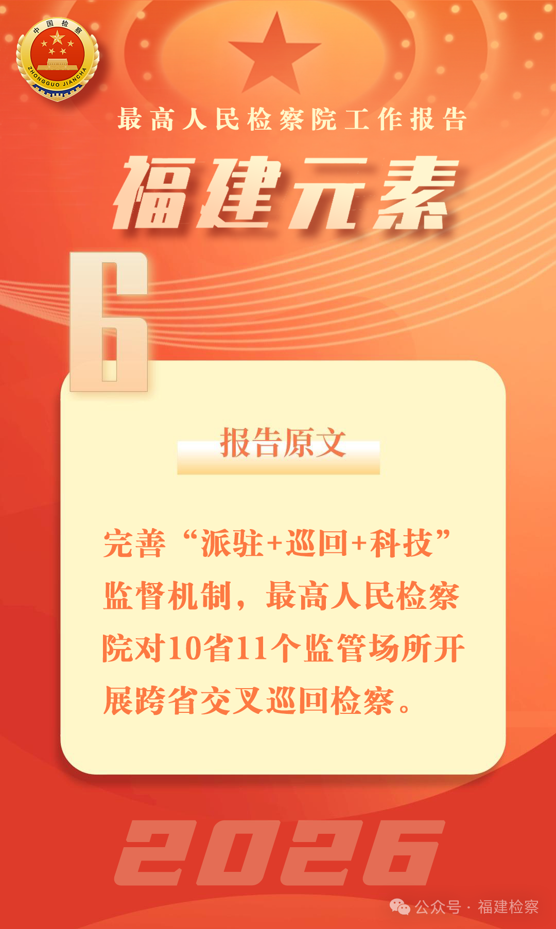 2025年8月25日至9月20日,最高检组织对福建闽江监狱开展跨省交叉巡回检察,同步对检察履职情况开展检查。福建省检察院全力配合做好迎检、整改各项工作,推动整改了反馈意见指出的监狱执法问题和检察履职问题。全省检察机关深入学习借鉴最高检跨省巡回检察经验做法,常态化、高质效推进全省巡回检察工作,2023年以来共计开展巡回检察191场次,其中组织对监狱、看守所跨地市交叉巡回检察29场次,实现全省监狱、看守所巡回检察第二轮全覆盖,有效促进监管执法水平和检察履职质效双提升。