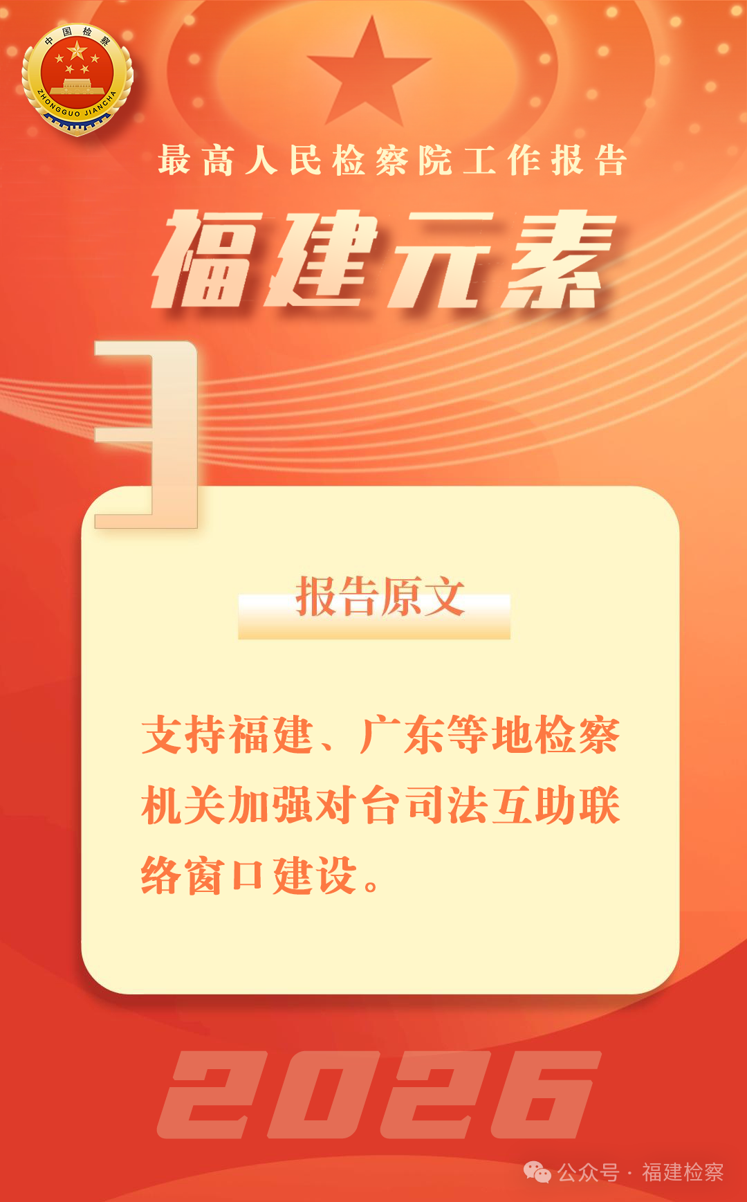 福建是两岸融合发展的前沿阵地,肩负建设两岸融合发展示范区的重大使命。福建检察机关认真贯彻落实上级决策部署,积极争取政策支持,最高检专门出台加强海峡两岸检察制度研究中心建设的意见。坚持依法平等保护台胞台企合法权益,办理涉台案件85件。深化 “一室多员”工作机制,完善涉台文物保护模式,连续举办十届海峡两岸检察制度研讨会,累计接收5批台湾地区法科学生实习实训,建成首个省级台湾青年实习实训基地。