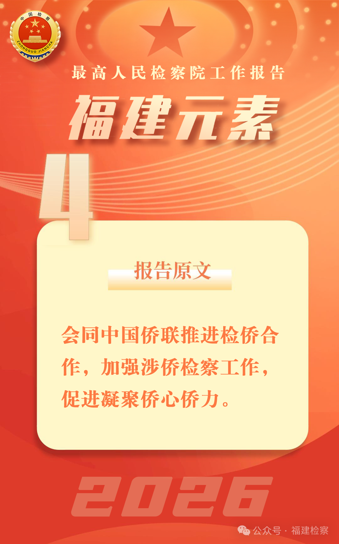 2025年11月19日至20日,全国检侨合作推进活动在福建厦门举行,最高检、中国侨联以及福建省委领导出席活动,福建省检察院等4个省级检察院、4个省级侨联介绍检侨合作典型案例。近年来,福建检察机关制定和落实《关于加强新时代涉侨检察工作 依法保护归侨侨眷和海外侨胞合法权益的意见》,以25条检察举措加强涉侨司法服务,相关工作连续两年在全国检侨合作推进活动上作经验交流,莆田涵江区检察院办理的涉侨留守未成年人不起诉案、泉州晋江市检察院办理的督促保护涉侨风貌建筑行政公益诉讼案入选最高检典型案例。2025年12月,省检察院、省侨联联合举办新闻发布会,系统介绍全省检侨合作成效,发布全省检察机关首批保护侨胞侨企合法权益典型性案例。