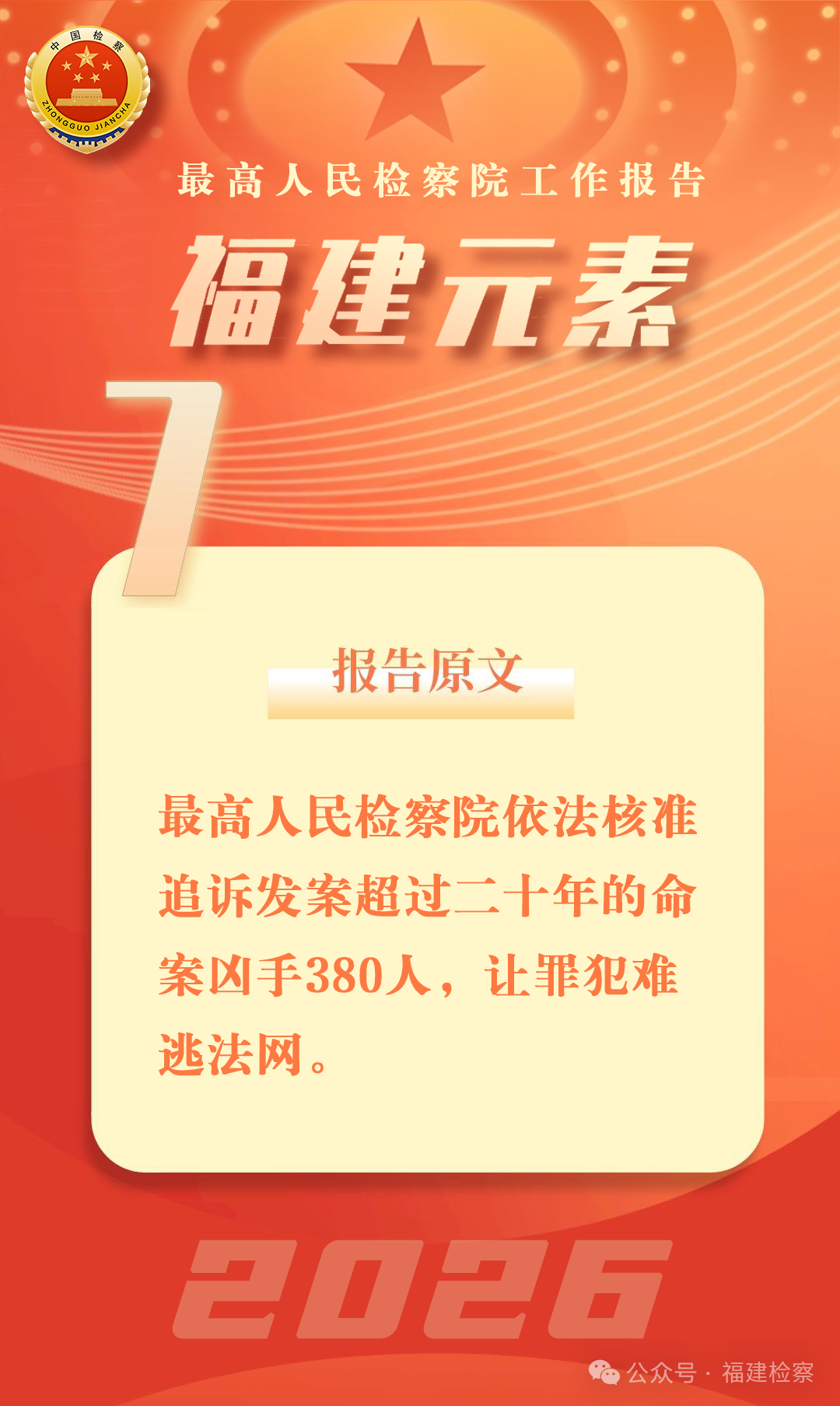 福建检察机关坚持依法严惩严重犯罪,对超过追诉期限但社会危害和影响依然存在的陈年命案重案,依法报请最高检核准追诉7人,办理的一起杀人潜逃30年核准追诉案件入选最高检陈年命案典型案例,昭示正义绝不会缺席。
