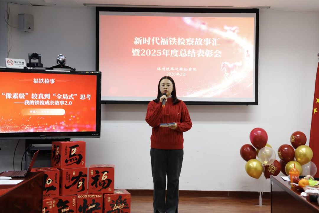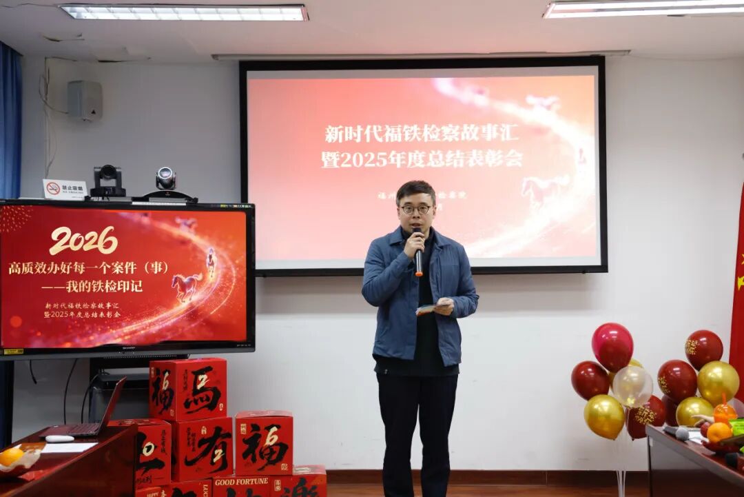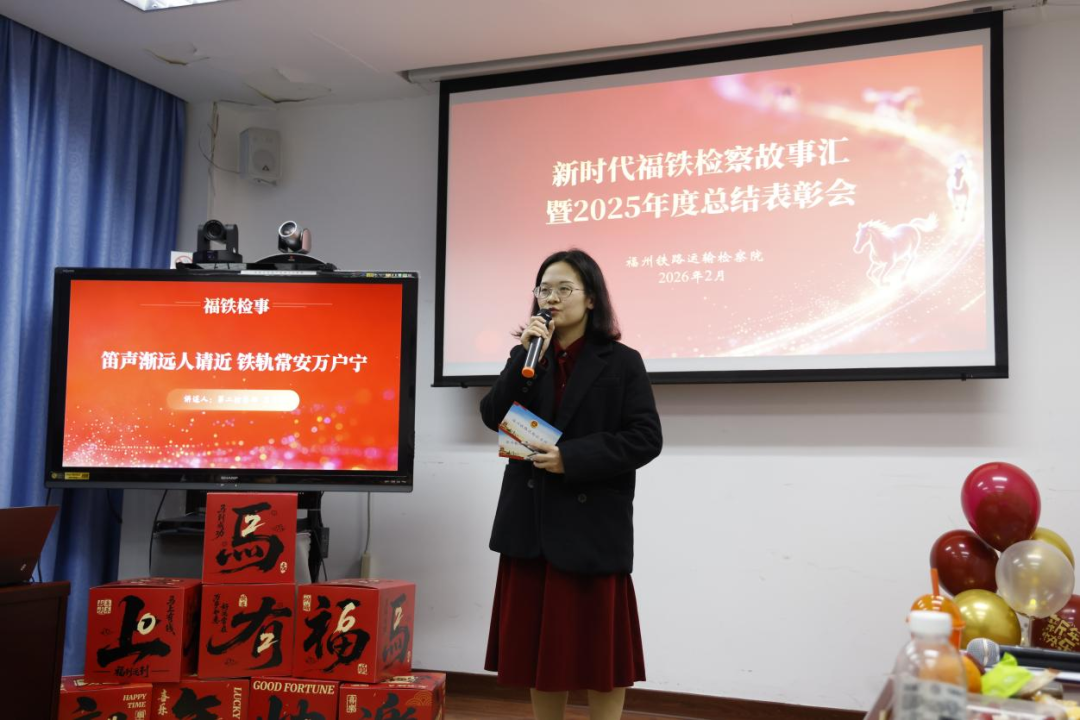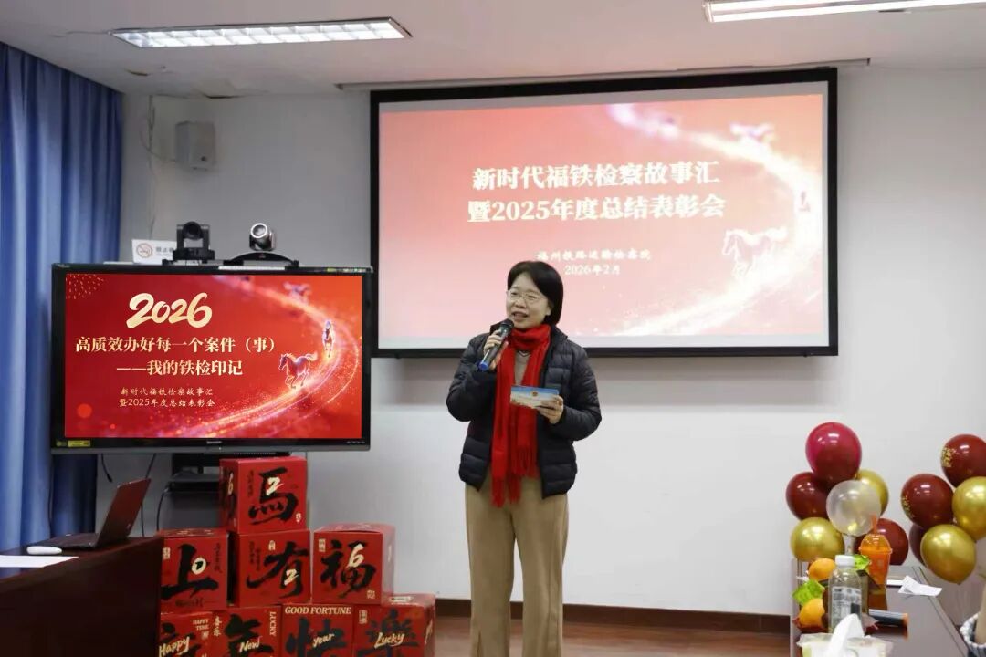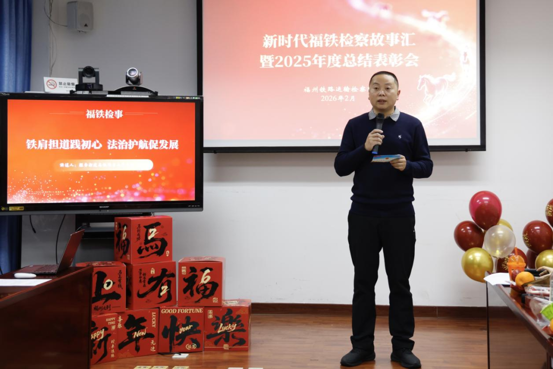 为深入学习贯彻党的二十届四中全会精神,全面践行习近平法治思想,2月11日,福州铁路运输检察院举办“高质效办好每一个案件(事)——我的铁检印记”新时代福铁检察故事汇暨2025年度总结表彰会。福建省人民检察院宣传处处长吴秋兰,福建师范大学法学院副书记、纪检监察学院副书记汪启思等嘉宾莅临现场。福州铁检院领导班子成员及全体干警参加活动。