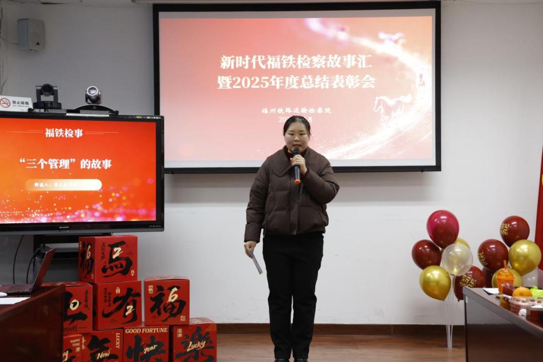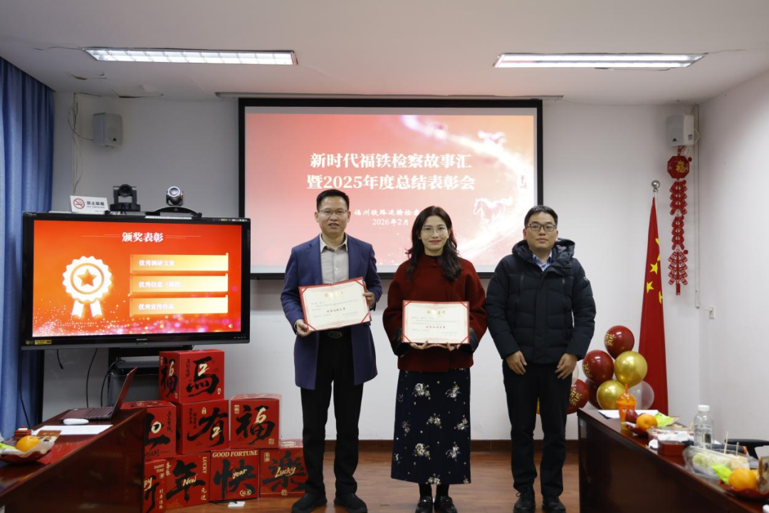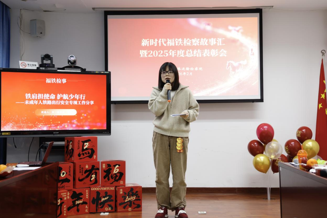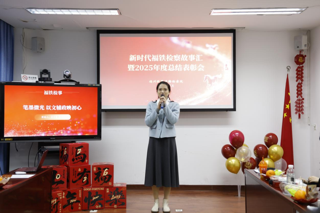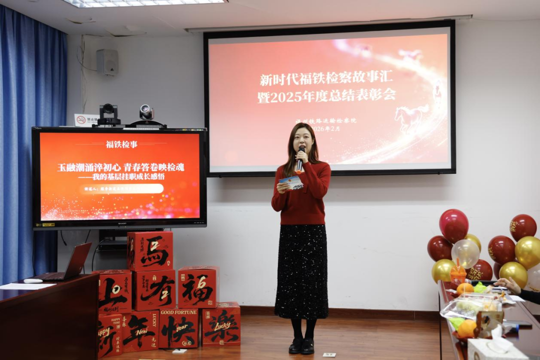 为深入学习贯彻党的二十届四中全会精神,全面践行习近平法治思想,2月11日,福州铁路运输检察院举办“高质效办好每一个案件(事)——我的铁检印记”新时代福铁检察故事汇暨2025年度总结表彰会。福建省人民检察院宣传处处长吴秋兰,福建师范大学法学院副书记、纪检监察学院副书记汪启思等嘉宾莅临现场。福州铁检院领导班子成员及全体干警参加活动。