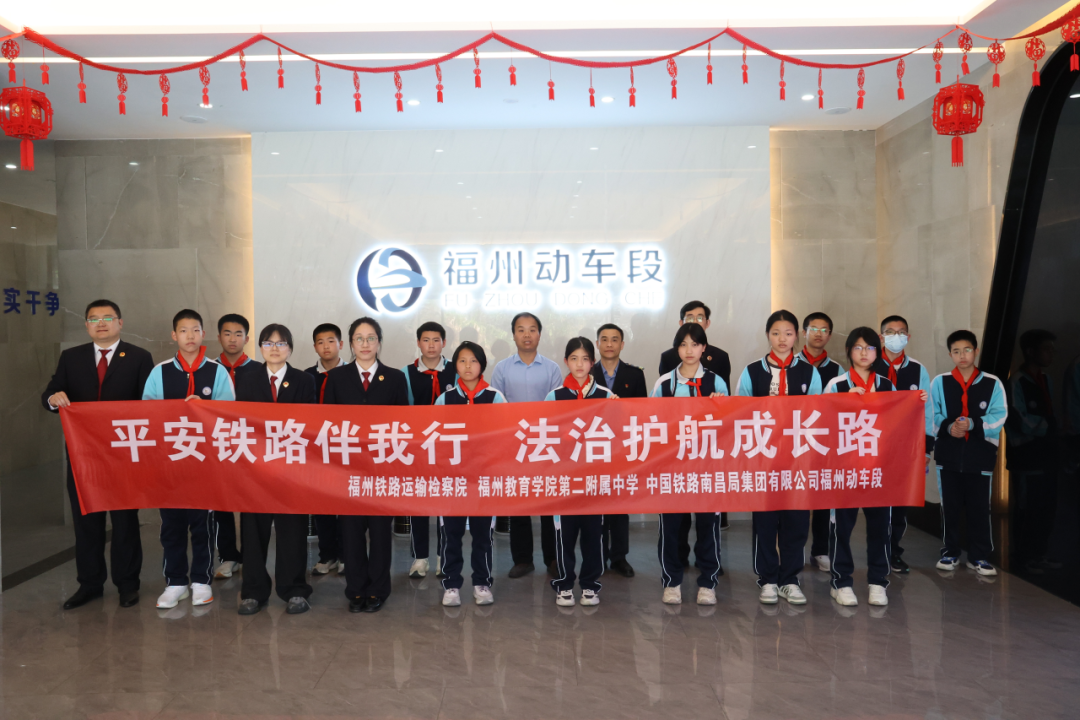 福州铁路运输检察院联合福州教育学院第二附属中学、福州动车段共同举办了“平安铁路伴我行 法治护航成长路”主题实践活动,十余名同学走出校园,走进高铁的“心脏”,开启了一段沉浸式、体验式的法治安全探索之旅。